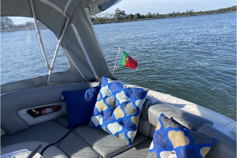 Lancha muito confortável, possui no cockpit um sofá em forma de U para 6 pessoas, com mesa de apoio e refeições. Temos uma cabine com uma cama de casal na proa, e outra cama de casal a meio navio. A bordo temos banheiro, frigorífico, televisão e água quente.