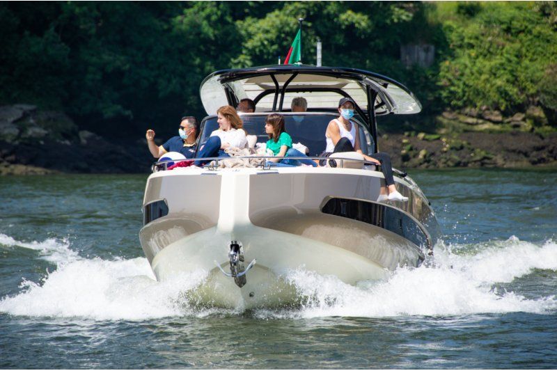 O interior do GT320 foi concebido para proporcionar o máximo conforto e luxo aos seus ocupantes. Com espaço suficiente para acomodar até 6 pessoas e tripulação, possui uma cabine espaçosa equipada com assentos ergonômicos, acabamentos de alta qualidade e atenção meticulosa aos detalhes. Além disso, possui uma área de estar externa e um protetor solar na proa, permitindo que os passageiros aproveitem o sol e a brisa do mar.