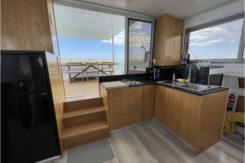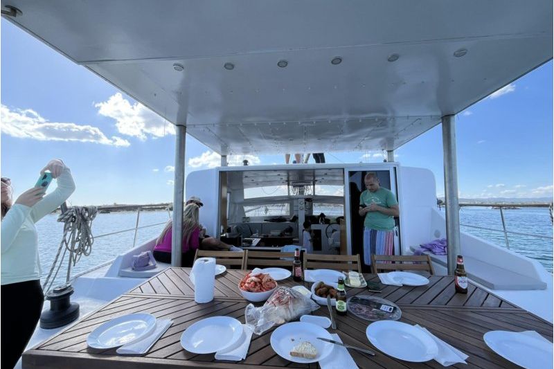 The Blue Lagoon is a premium 13.25-meter sailing boat, fully equipped for both daily and weekly excursions along the Ria Formosa and Algarve coast. Designed for versatility, it can sail under wind power or motor, adapting to various sea conditions. With 4 double cabins, each with a private bathroom, it offers comfort and privacy for all guests. The spacious exterior includes a well-designed cockpit, relaxation areas, and an outdoor dining space perfect for pleasant meal . Equipped with advanced navigation and communication systems, the Blue Lagoon is ideal for safe, enjoyable trips along the coast, with an experienced skipper on board.
