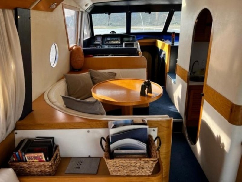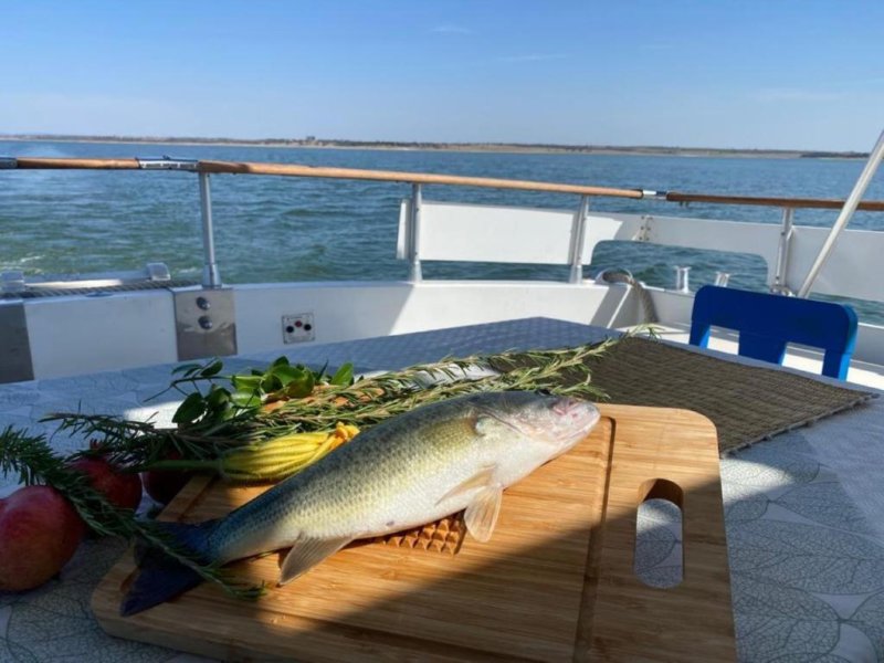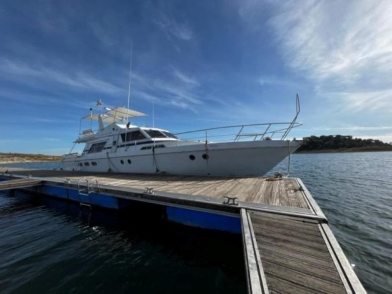clássico dos anos 80 atracado no Centro Náutico de Monsaraz. Aloja 7 pessoas em 3 quartos com respectivas casas de banho.
