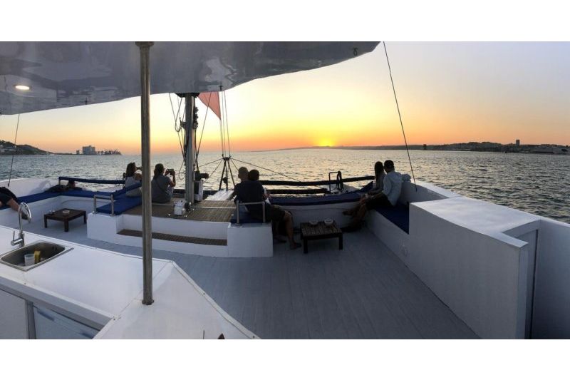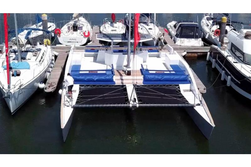A former racing sailing catamaran that was tottaly rebuilt, open space