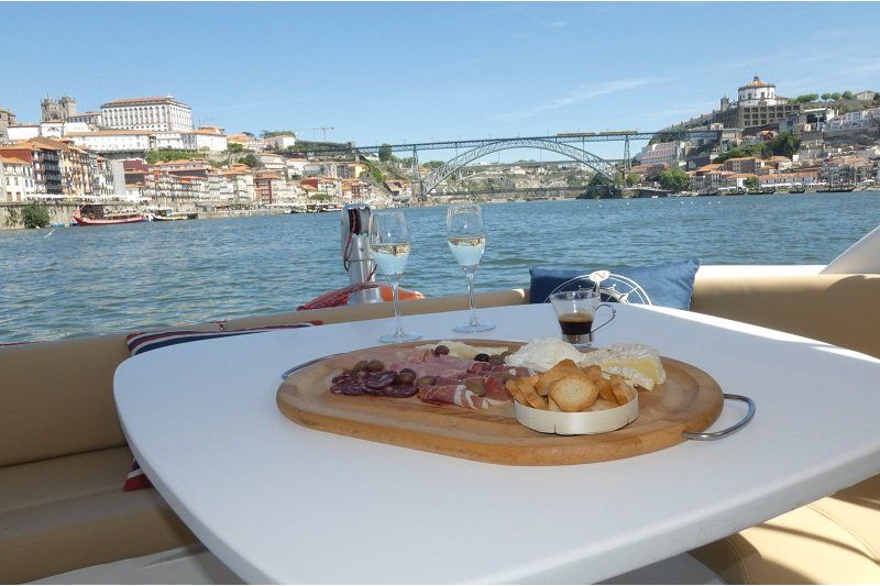 tripulação + combustível + seguro + Eclusa subida e descida (Crestuma) + welcome drink + tábua de produtos regionais
